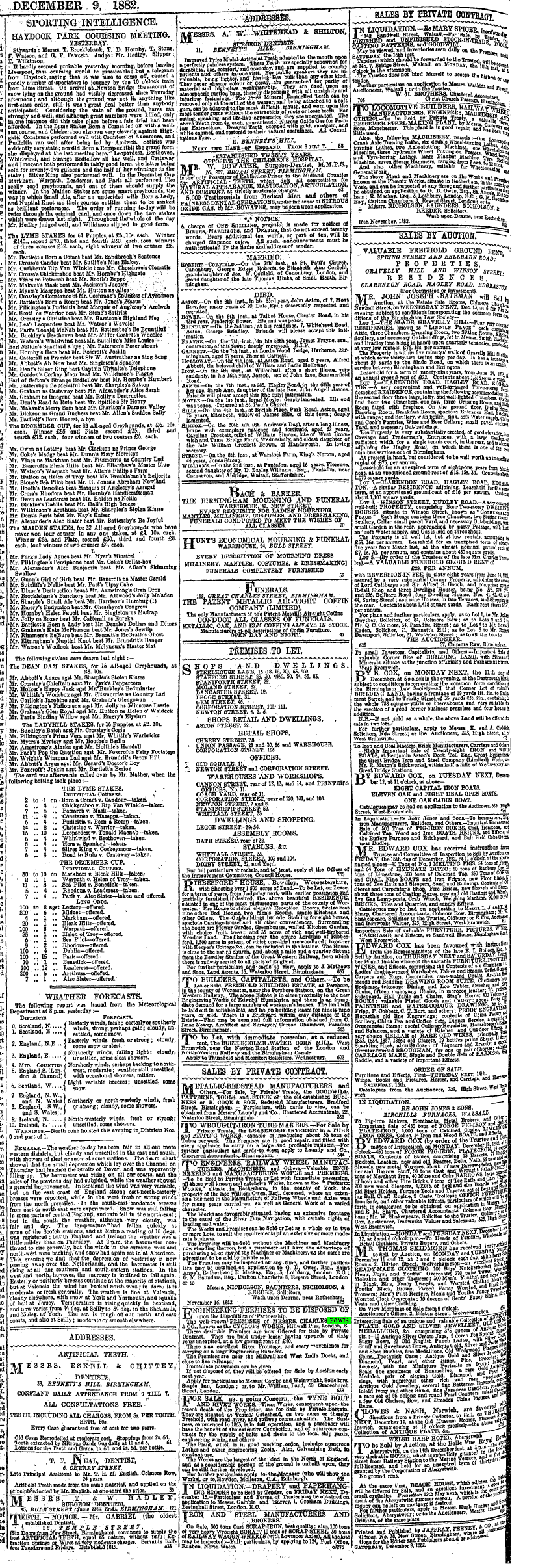 Birmingham Daily Post Issue 7624 Sat 9th Dec 1882