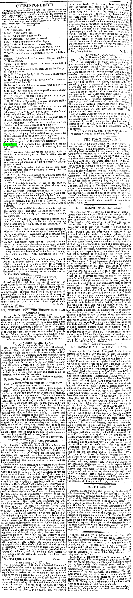 Birmingham Daily Post Issue 8936 Thurs 17th Feb 1887